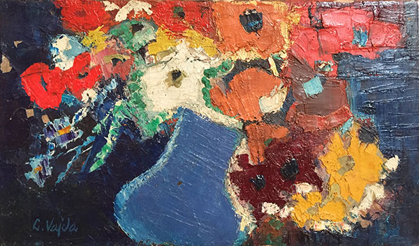 Bouquet renverséFleurs, les débuts 1970Huile sur toile24×41 cmSigné en bas à gauche Collection Mona Gehler previousFleursnextAnémones