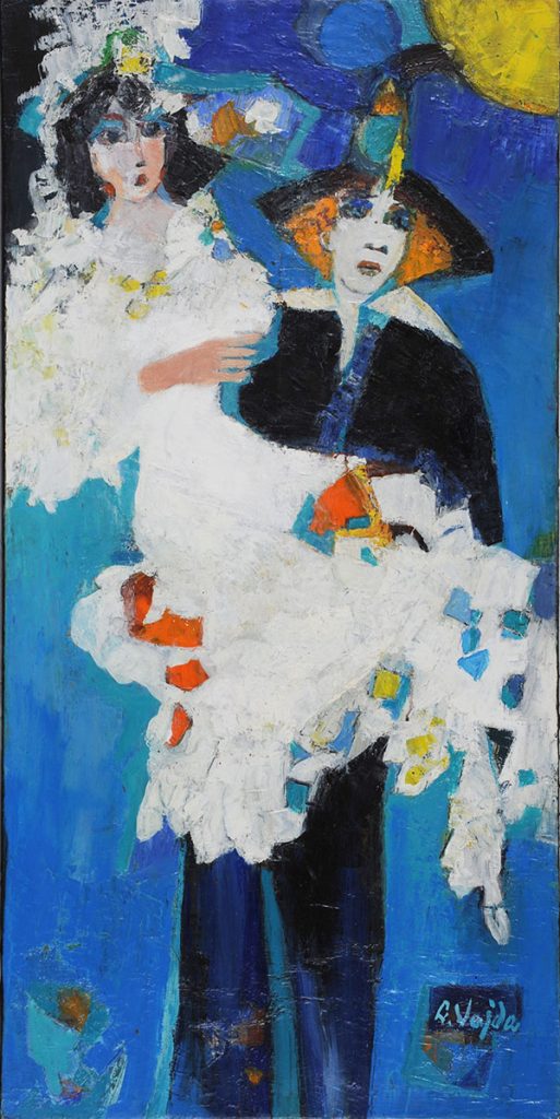 Le poète et sa musePersonnages, les débuts 1996Huile sur toile80×40 cmSigné en bas à droite Collection de l’artisteExposition : Rétrospective 2012 Paris previousLes africainesnextLe modèle