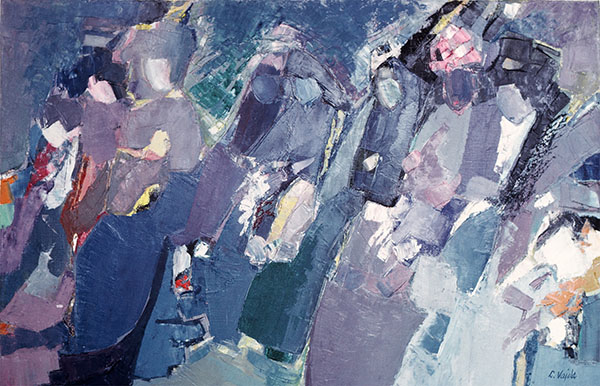 Les ravaudeusesPersonnages, les débuts 1968Huile sur toileSigné en bas à droite Collection Kligsberg, AnversExposition : Galerie Racines, Bruxelles previousLes dames en noirnextLes commères