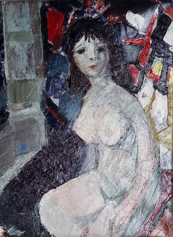 Nu assisPersonnages, les débuts 1965Huile sur toileSigné en bas à gauche Exposition : Galerie La Palette bleue, Paris et Galerie Racines, Bruxelles previousNuméro 77nextMise à nue